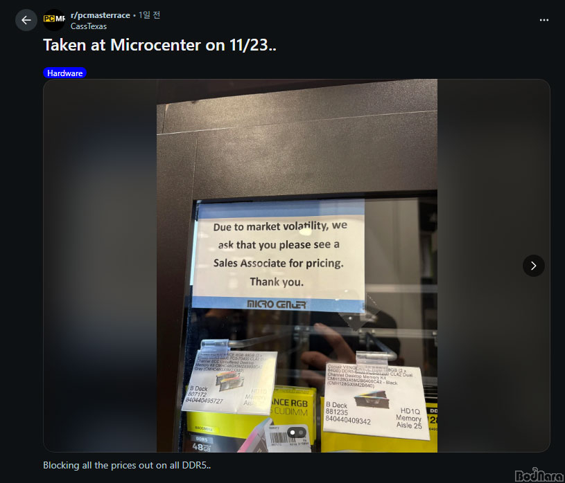 ´ëÇ¥ÀûÀ¸·Î, ÃÖ±Ù ºí·¢ÇÁ¶óÀ̵¥ÀÌ ¼¼ÀÏÀÌ ÁøÇà ÁßÀÎ »óȲ¿¡¼ 449´Þ·¯ ÇÒÀÎÀÌ ÁøÇà ÁßÀÎ Ç÷¹À̽ºÅ×ÀÌ¼Ç 5º¸´Ù, DDR5-6400 C30 2x32GB ¸Þ¸ð¸® ¼¼Æ® °¡°ÝÀÌ ´õ ³ôÀº »óȲµµ ¹ú¾îÁö°í ÀÖÀ¸¸ç, AMD¿Í ¿£ºñµð¾Æ, ÀÎÅÚÀÇ ±×·¡ÇÈ Ä«µåÀÇ °¡°Ý Àλó ¹× ½ÅÁ¦Ç° Ãâ½Ã±îÁö ¿µÇâÀ» ³¢Ä¥ °¡´É¼ºÀÌ ¾ð±ÞµÇ°í ÀÖ´Ù.