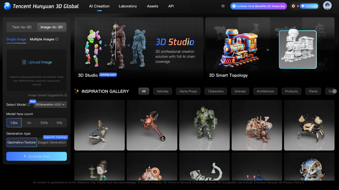ÈÆÀ§¾È 3D ±Û·Î¹ú ¹öÀü »ç¿ëÀÚ´Â ¸ÅÀÏ 20ȸÀÇ ¹«·á »ý¼ºÀÌ °¡´ÉÇϸç, ÅÙ¼¾Æ® Ŭ¶ó¿ìµå¸¦ ÅëÇØ ÈÆÀ§¾È 3D ¸ðµ¨ API¸¦ ¿¬µ¿ÇÑ ±â¾÷ »ç¿ëÀÚ´Â 3D ¿¡¼Â »ý¼º¿¡ »ç¿ëÇÒ ¼ö ÀÖ´Â 200 Å©·¹µ÷À» ¹«·á·Î Á¦°ø¹Þ´Â´Ù.