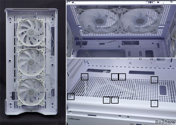 ÇÏ´Ü PSU ÀåÂøºÎ¿Í º»Ã¼ ±¸¿ªÀ» ±¸ºÐÇÏ´Â ÆÄƼ¼Ç¿¡´Â 120mm Äð¸µÆÒ 2°³¸¦ ÀåÂøÇÒ ¼ö