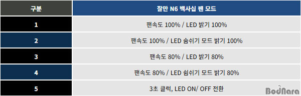 ¿¬°áµÇ¾î ÀÖ´Ù. À̶§ ¸®¼Â ¹öưÀ» ´·¯ ÆÒ¼Óµµ 100%/ 80%, LED ¹à±â 100%/ 80%/ OFF, ÆÐÅÏ °íÁ¤/