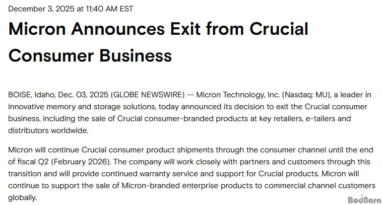 ȸ»ç´Â º¸µµÀڷḦ ÅëÇØ Å©·ç¼È ºê·£µå DRAM°ú SSD µîÀÇ Á¦Ç° ÃâÇϸ¦ 2026 ȸ°è¿¬µµ 2ºÐ±â ¸», Áï 2026³â 2¿ù±îÁö À̾ µÚ ÆÇ¸Å¸¦ Áß´ÜÇÑ´Ù°í ¹àÇû´Ù. ÀÌ ±â°£ µ¿¾È ±âÁ¸ À¯Åë¸ÁÀ» ÅëÇÑ Á¦Ç° °ø±ÞÀº Á¤»óÀûÀ¸·Î À¯ÅëµÇÁö¸¸, ½ÃÀå¿¡ Ç®¸° Àç°í°¡ ¼ÒÁøµÈ ÀÌÈķδ ¼ÒºñÀÚ ½ÃÀå¿¡¼ Å©·ç¼È Á¦Ç°À» ´õ ÀÌ»ó ¸¸³¯ ¼ö ¾ø°Ô µÈ´Ù.