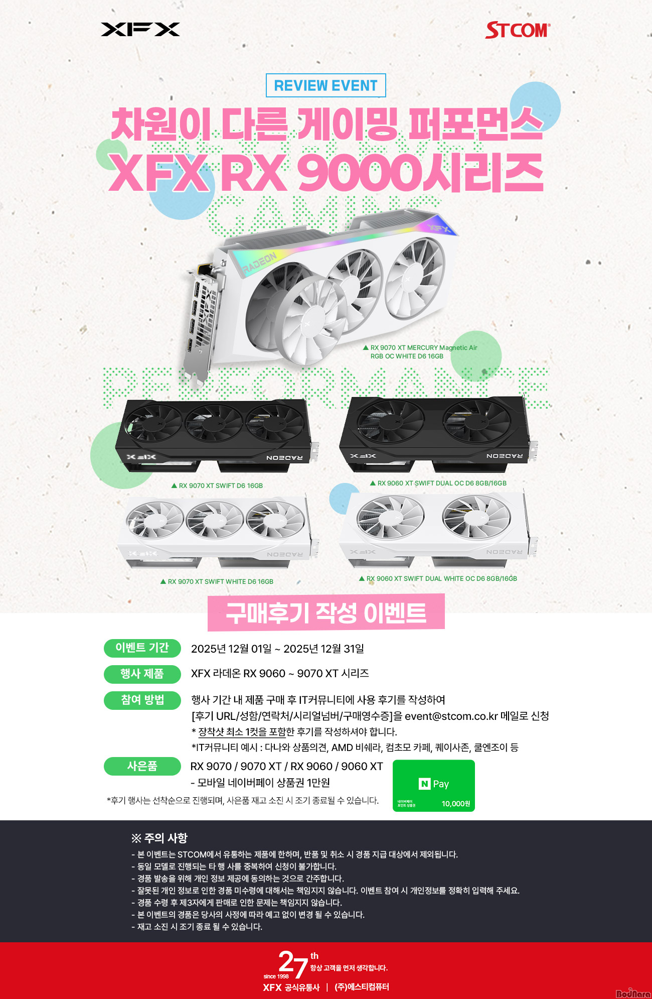1998³â ¼³¸³µÇ¾î 20³â ÀÌ»ó ÄÄÇ»ÆÃ °ü·Ã ¼Ö·ç¼ÇÀ» À¯ÅëÇØ¿Â Àü¹® ¼öÀÔ»çÀÎ (ÁÖ)¿¡½ºÆ¼ÄÄÇ»ÅÍ (´ëÇ¥: ¼Èñ¹®, ÀÌÇÏ STCOM)´Â 12¿ù XFX ¶óµ¥¿Â RX 9000 ½Ã¸®Áî ±¸¸ÅÀÚ¸¦ ´ë»óÀ¸·Î Èıâ ÀÛ¼º Çà»ç¸¦ ÁøÇàÇÑ´Ù.