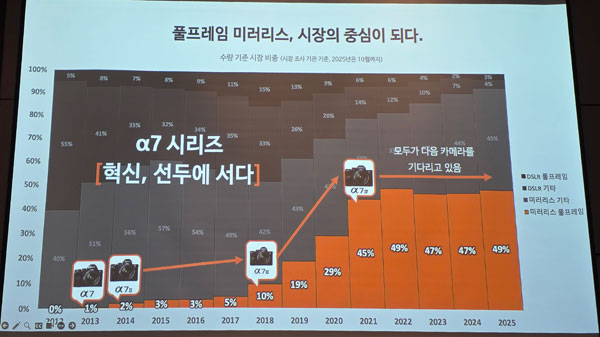 È帧°ú ¼Ò´Ï Ç®ÇÁ·¹ÀÓ ¹Ì·¯¸®½º Àü·«À» ¼³¸íÇß´Ù. Ç®ÇÁ·¹ÀÓ ¹Ì·¯¸®½º µîÀå ÀÌÀü¿¡´Â APS-C DSLR°ú ¹Ì·¯¸®½º°¡ ½ÃÀåÀÇ