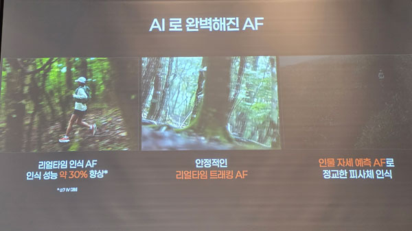 °íÁ¤¹Ð ¹× AI·Î °ÈµÈ AF´Â ÇÇ»çü ÀνÄÀ²À» °³¼±Çϰí, ÀÚµ¿ ¸ðµå·Î ½Å¼ÓÇÑ ÇÇ»çü Æ÷Âøµµ Áö¿øÇÑ´Ù.