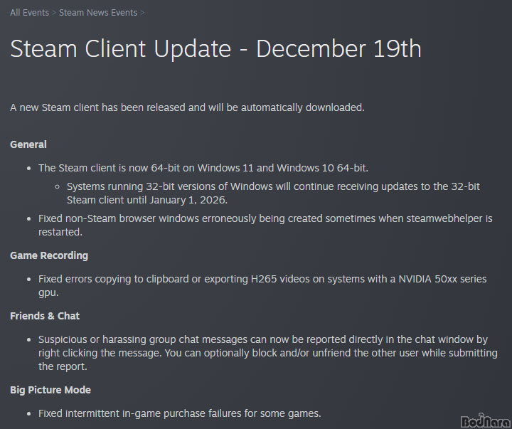 ½ºÆÀ(Steam)ÀÌ À©µµ¿ì¿ë Ŭ¶óÀ̾ðÆ®ÀÇ 32bit ȯ°æ Áö¿ø Á¾·á¸¦ °ø½Ä ¹ßÇ¥Çß´Ù.