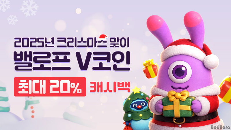 ¹ë·ÎÇÁ(331520, ´ëÇ¥ ½ÅÀç¸í)´Â Å©¸®½º¸¶½º¸¦ ¸Â¾Æ ÀÚ»ç ±Û·Î¹ú °ÔÀÓ Ç÷§Æû VFUN ÀÌ¿ëÀÚ¸¦ ´ë»óÀ¸·Î ÃÖ´ë 20% ij½Ã¹é ÇÁ·Î¸ð¼ÇÀ» ÁøÇàÇÑ´Ù°í 24ÀÏ ¹àÇû´Ù.
