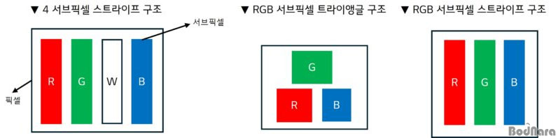 RGB ½ºÆ®¶óÀÌÇÁ ±¸Á¶´Â ºûÀÇ »ï¿ø»öÀÎ RGB ¼ºêÇȼ¿À» ³ª¶õÈ÷ ¹è¿ÇÑ ±¸Á¶·Î, °¡±î¿î °Å¸®¿¡¼µµ »ö ¹øÁü(color bleeding), »ö ÇÁ¸°Áö(Color fringe) µî ¿Ö°î Çö»óÀ» ÁÙÀÏ ¼ö ÀÖ´Ù. ÀÌÀü¿¡µµ RGB ½ºÆ®¶óÀÌÇÁ ¹æ½ÄÀÇ OLED ÆÐ³ÎÀº ÀÖ¾úÁö¸¸ ÃÖ°í ÁÖ»çÀ²ÀÌ 60Hz ¼öÁØ¿¡ ±×ÃÄ °ÔÀÌ¹Ö ¸ð´ÏÅÍ·Î »ç¿ëÇÒ ¼ö ¾ø¾ú´Ù.