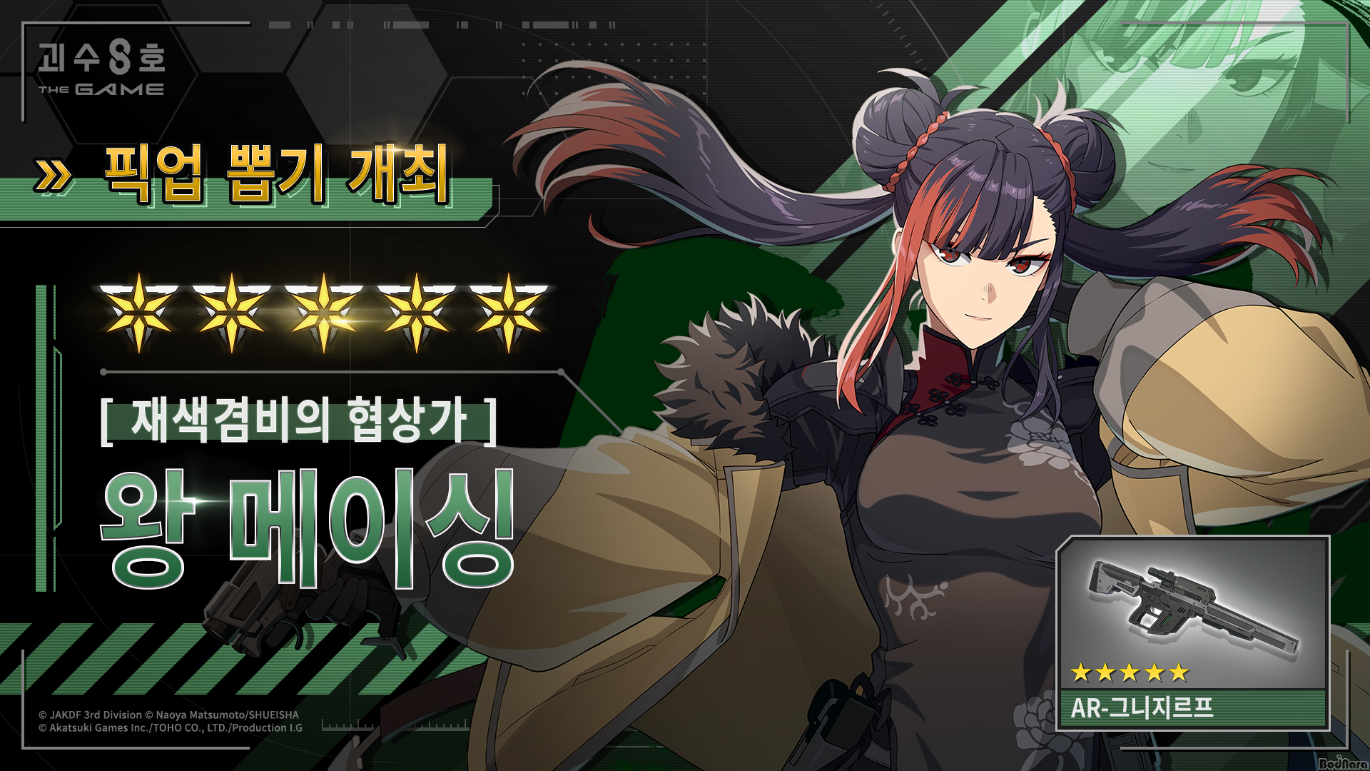 ¾ÆÄ«Ã÷Ű °ÔÀÓÁî(Akatsuki Games Inc.)´Â ÅäÈ£(TOHO CO., LTD.), ÇÁ·Î´ö¼Ç I.G.(Production I.G.)¿Í °øµ¿À¸·Î Á¦ÀÛÇØ Á¤½Ä ¼ºñ½º¸¦ ½ÃÀÛÇÑ °Å´ëÇÑ ±«¼ö¿¡ ¿ªÀüÀÇ ÇÑ ¹æÀ» ³¯¸®´Â ÀÚÀÌ¾ðÆ® Å³¸µ RPG ‘±«¼ö 8È£ THE GAME’¿¡ ¸ÞÀÎ ½ºÅ丮 éÅÍ7 ‘±«¼öÀÇ ¿Õ ¿ä°Ý ÀÛÀü’ °ø°³¿Í ÇÔ²², °ÔÀÓ ¿À¸®Áö³Î ½Å ¡Ú5 ij¸¯ÅÍ [Àç»ö°âºñÀÇ Çù»ó°¡] ¿Õ ¸ÞÀ̽ÌÀ» ¾÷µ¥ÀÌÆ®Çß´Ù°í ¹àÇû´Ù.