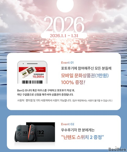 º´¿À³â »õÇØ¸¦ ¸ÂÀÌÇÏ¿© ÁøÇàÇÏ´Â À̹ø À̺¥Æ®´Â 1¿ù ÇÑ ´Þ °£ º¥Å¥ ¸ð´ÏÅÍ ¶Ç´Â ¸¶¿ì½º¸¦ ±¸ÀÔÇÏ°í Æ÷ÅäÈı⸦ ÀÛ¼ºÇÑ µÚ, ±¸±ÛÆûÀ¸·Î ½ÅûÇÑ ¸ðµç ºÐµé¿¡°Ô ¸ð¹ÙÀÏ ¹®È»óǰ±Ç(1¸¸¿ø±Ç)À» ÁõÁ¤Çϰí, ¿ì¼ö ÈıâÀÚ 1¸í¿¡°Ô´Â ‘´ÑÅÙµµ ½ºÀ§Ä¡ 2’¸¦ Ãß°¡·Î ÁõÁ¤ÇÏ´Â Çà»çÀÌ´Ù.