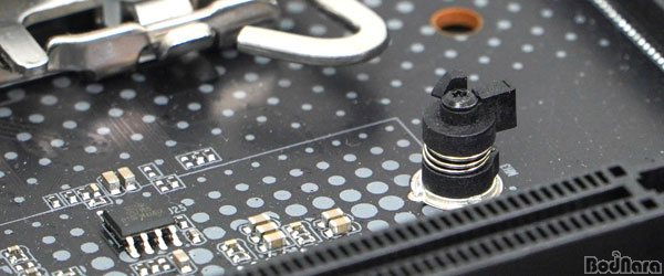 º¸µí Àüü Àü¿øºÎ¿¡ ¹æ¿ÆÇÀ» ´õÇϰí, PCIe x16 ½½·Ô¿¡´Â ±Ý¼ÓÀçÁúÀÇ ÁöÁö´ë¸¦ ´õÇØ ÇÏÀÌ¿£µå ±×·¡ÇÈ Ä«µåÀÇ ¹«°Ô¿¡ ÀÇÇÑ