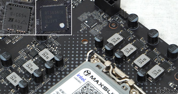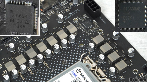 DrMOS, ÃÖ´ë 8+1+1 Æ®¸®Çà ä³Î PWM Á¦¾î°¡ °¡´ÉÇÑ RT3638AE ÄÁÆ®·Ñ·¯°¡ »ç¿ëµÇ¾ú´Ù. H810 Ĩ¼Â Ư¼º»ó