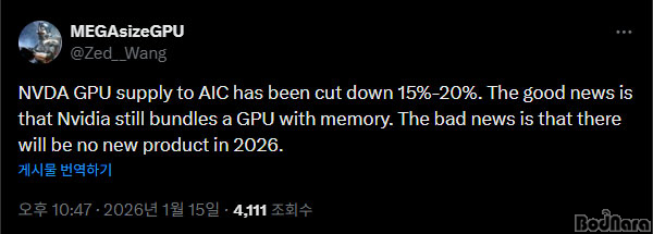 ÇÑÆí, ¿£ºñµð¾ÆÀÇ GPU °ø±Þ Ãà¼Ò ¹è°æÀ¸·Î´Â ±×·¡ÇÈÄ«µå¿ë ¸Þ¸ð¸® ¼ö±Þ ¹®Á¦°¡ °¡Àå Å« ¿øÀÎÀ¸·Î Áö¸ñµÈ´Ù. AI µ¥ÀÌÅͼ¾ÅÍ¿Í ¼¹ö¿ë Á¦Ç°¿¡ °í¿ë·® ¸Þ¸ð¸® ¼ö¿ä°¡ ÁýÁߵǸé¼, °ÔÀÌ¹Ö GPU¿¡ ÅõÀÔÇÒ ¼ö ÀÖ´Â ¸Þ¸ð¸® ¹°·®ÀÌ Á¦Çѵǰí ÀÖ´Ù´Â ºÐ¼®ÀÌ´Ù.