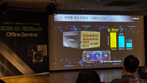 Ãø¸éÀ¸·Î ³ª´² Á¢±ÙÇϰí ÀÖ´Ù°í ¼³¸íÇß´Ù. Çϵå¿þ¾î Ãø¸é¿¡¼´Â ATX 3.1 ±Ô°ÝÀ» ³Ñ¾î¼± Àü·Â ÇÇÅ© ´ëÀÀ ¼³°è, °í±Þ ºÎǰ
