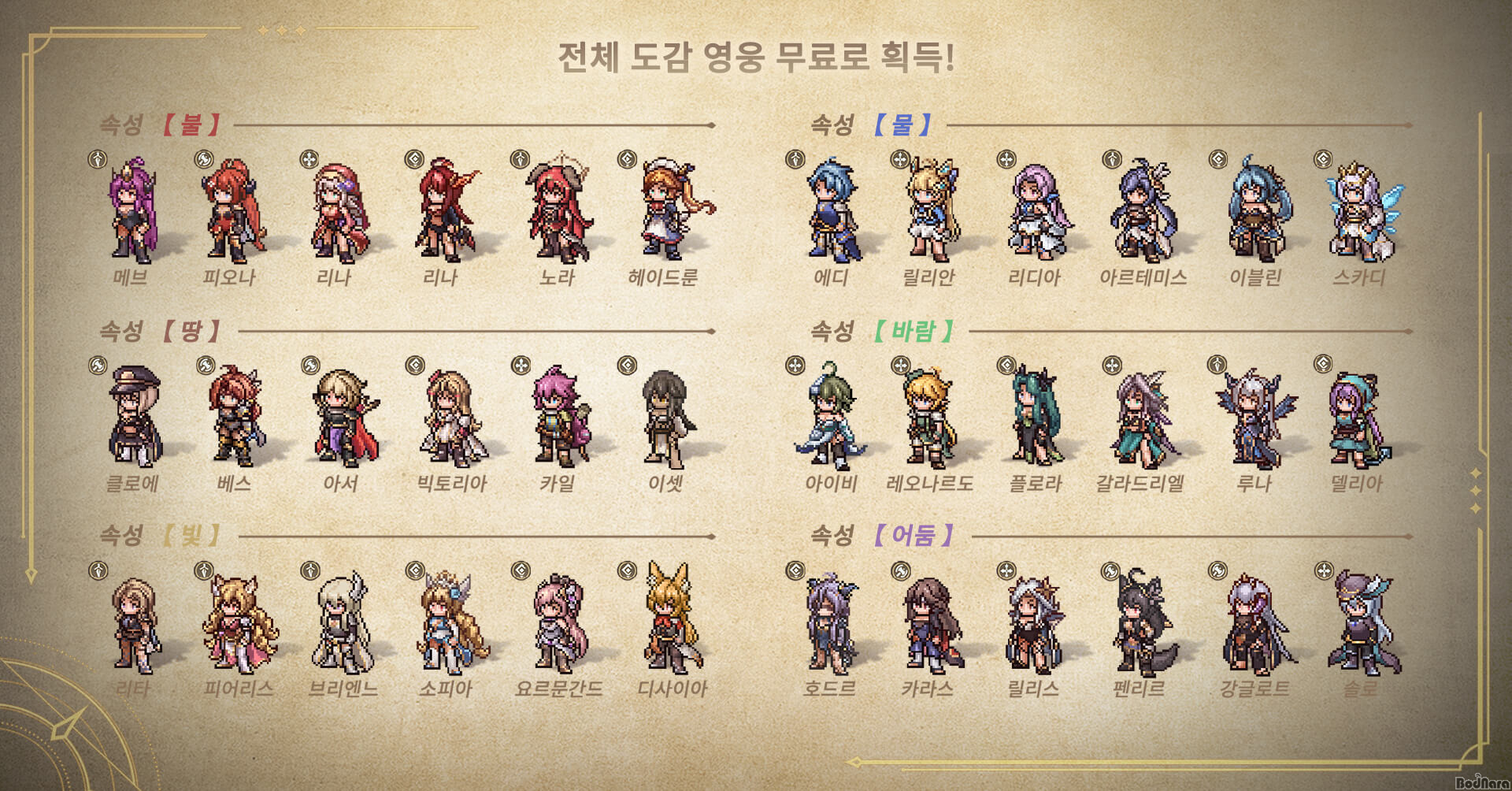 ij¸¯ÅÍ µðÀÚÀÎÀÇ °æ¿ì ‘µµÆ®·Î Ŭ·¡½Ä¿¡ °æÀǸ¦ Ç¥ÇÑ´Ù’¶ó´Â °³¹ß ¿øÄ¢¿¡ µû¶ó ±¸ÃàµÆ´Ù. ÇÑÁ¤µÈ Çȼ¿ ³»¿¡¼ Çì¾î ½ºÅ¸ÀÏ, ¹«±â, º¹ÀåÀÇ ¼¼¼¼ÇÑ µðÅ×ÀϱîÁö Á¤¹ÐÇÏ°Ô ´ã¾Æ³»¸é¼ °¢ ¿µ¿õÀÇ °³¼º°ú Á¸Àç°¨À» ÇÑÃþ °ÈÇß´Ù. ÀÌ¿¡, ´Ü¼øÇÑ µµÆ® ij¸¯Å͸¦ ³Ñ¾î, À¯ÀúÀÇ Ãß¾ï°ú ¼¼°è°üÀ» ¿¬°áÇÏ´Â »ó¡Àû ÀåÄ¡·Î ±â´ÉÇÑ´Ù.