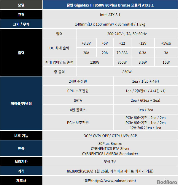 À߸¸ GigaMax III 850W 80Plus ºê·ÐÁî ¸ðµâ·¯ ATX 3.1´Â ¼¼¹Ì
