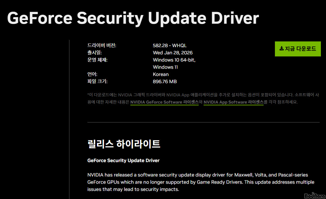 ¿£ºñµð¾Æ°¡ 2025³â 11¿ùÀ» ±âÁ¡À¸·Î °ÔÀÓ ·¹µð Áö¿øÀ» Á¾·áÇÑ ÆÄ½ºÄ®(Pascal) ¹× ¸Æ½ºÀ£(Maxwell) ¾ÆÅ°ÅØÃ³ ±â¹Ý ±×·¡ÇÈ Ä«µå¸¦ À§ÇÑ ½Å±Ô ±×·¡ÇÈ µå¶óÀ̹ö¸¦ ¹èÆ÷Çß´Ù.