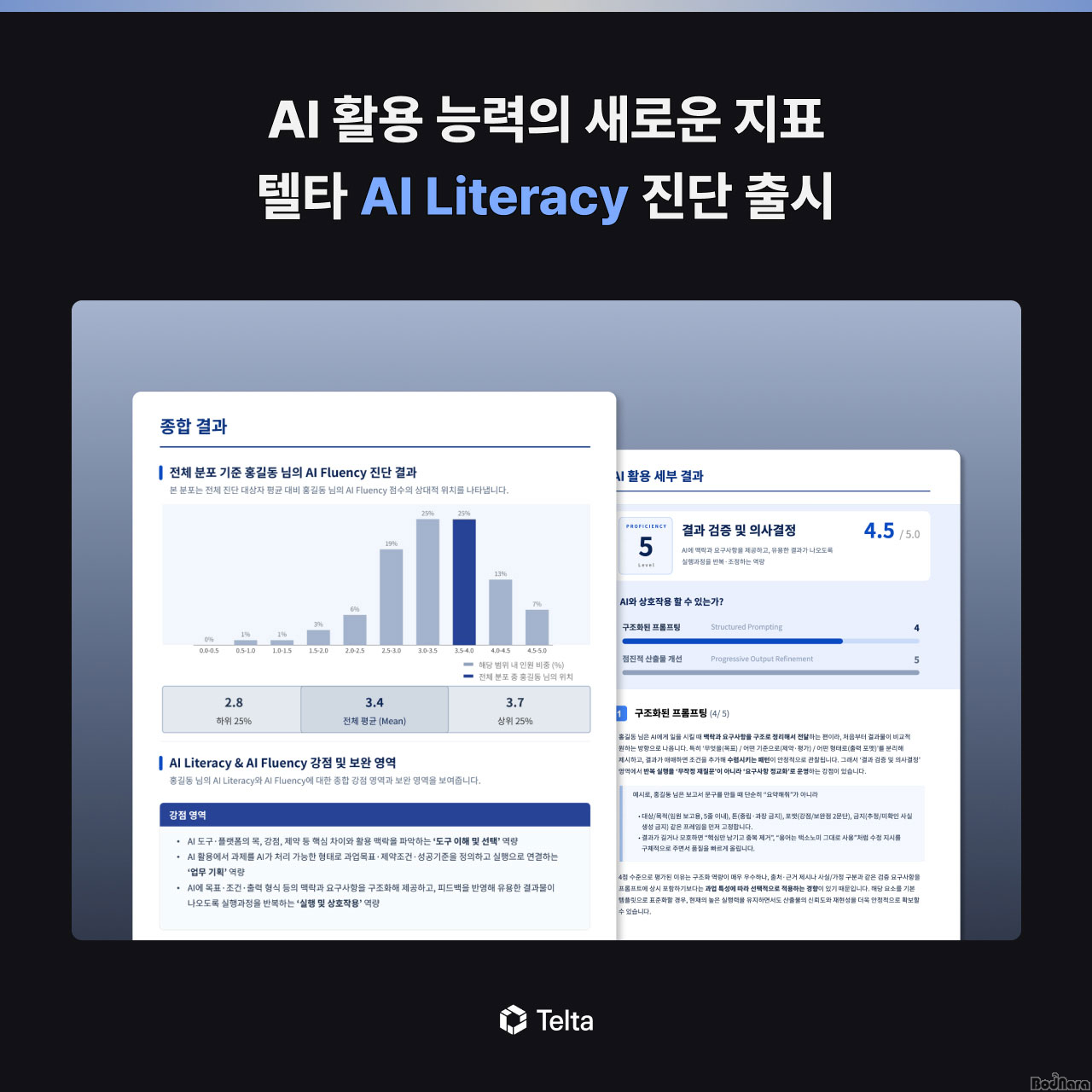 AI ±â¹Ý HR ÀÎÅÚ¸®Àü½º ¼Ö·ç¼Ç ‘ÅÚŸ(Telta)’°¡ Á¶Á÷ÀÇ AI Ȱ¿ë ´É·ÂÀ» °´°üÀûÀ¸·Î ÃøÁ¤ÇÏ´Â ‘AI ¸®ÅÍ·¯½Ã(Literacy) Áø´Ü’À» Ãâ½ÃÇß´Ù°í ¹àÇû´Ù.