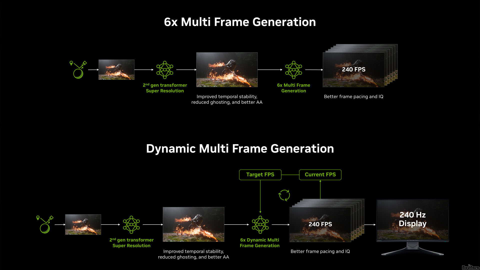 CES¿¡¼ ¿£ºñµð¾Æ°¡ °ø°³ÇÑ DMFG(Dynamic Multi Frame Generation)¿Í MFG 6x(Multi Frame Generation 6x) ±â´ÉÀÌ 4¿ù Á¤½Ä Ãâ½ÃµÈ´Ù.