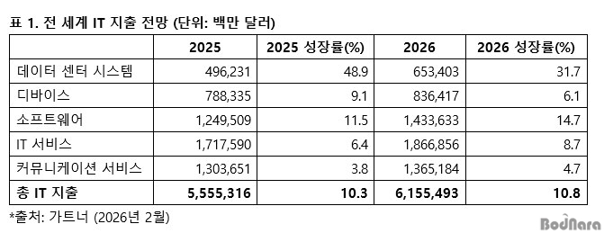 °¡Æ®³Ê(Gartner)°¡ 2026³â Àü ¼¼°è IT ÁöÃ⠱Ը𰡠Àü³â ´ëºñ 10.8% Áõ°¡ÇÑ 6Á¶1,500¾ï ´Þ·¯(¾à 8,961Á¶ ¿ø)¿¡ À̸¦ °ÍÀ¸·Î Àü¸ÁÇß´Ù.