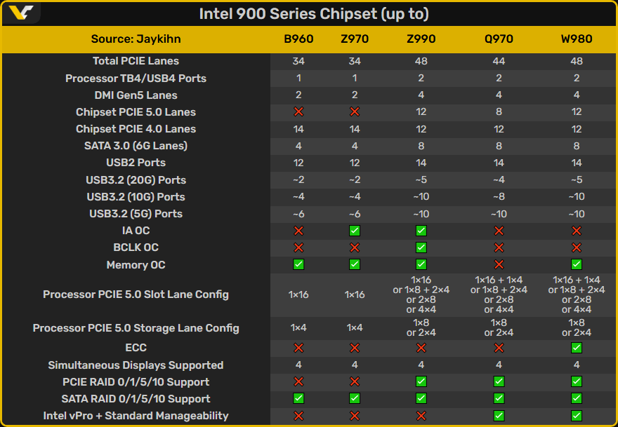 À¯Ãâ Á¤º¸¿¡ µû¸£¸é ÃÖ»óÀ§ Ĩ¼ÂÀÎ Z990Àº ÃÑ 48°³ÀÇ PCIe ·¹ÀÎÀ» Á¦°øÇϸç, ÀÌ Áß PCIe 5.0 ·¹ÀÎ 12°³, PCIe 4.0 ·¹ÀÎ 12°³ ±¸¼ºÀÌ Æ÷ÇԵȴÙ. ¶ÇÇÑ USB4/½ã´õº¼Æ®4 2°³, ÃÖ´ë USB 3.2 Gen2x2(20Gbps) 5°³, SATA 8Æ÷Æ® Áö¿øÀÌ ¸í½ÃµÆ´Ù. CPU ¿À¹öŬ·°(IA OC), BCLK ¿À¹öŬ·°, ¸Þ¸ð¸® ¿À¹öŬ·°À» ¸ðµÎ Áö¿øÇÏ´Â Ç® ±â´É Ĩ¼ÂÀ¸·Î, Â÷¼¼´ë ÇÏÀÌ¿£µå µ¥½ºÅ©Åé ½ÃÀåÀ» °Ü³ÉÇÑ ±¸¼ºÀÌ´Ù.
