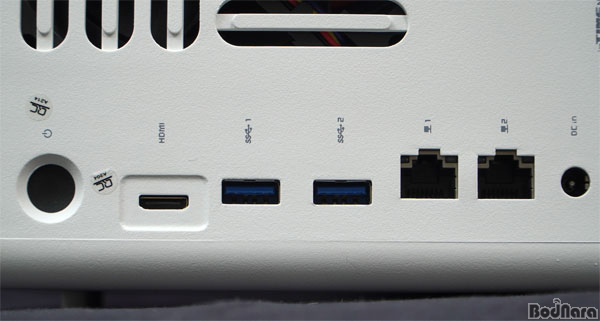 ipTIME NAS400plusÀÇ Èĸé I/O ±¸¼ºÀº Àü¿ø ¹öư°ú ¹Ì´ÏHDMI Æ÷Æ®,