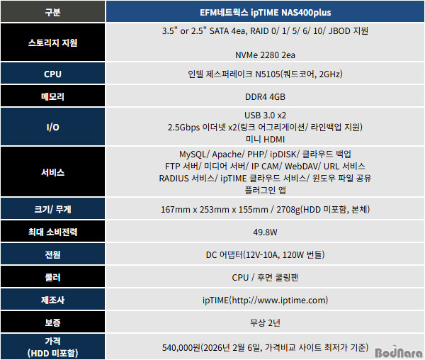 EFMnetworks¿¡¼ Ãâ½ÃÇÑ ipTIME NAS400 Plus´Â À̸§¿¡¼