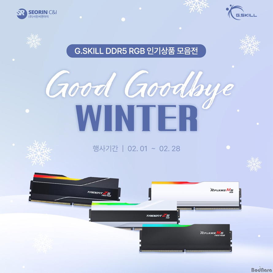 ÄÄÇ»ÅÍ °ü·Ã ÁÖ¿ä ºÎǰ ¼öÀÔ À¯Åë Àü¹® ¾÷ü ¼¸°¾¾¾Ø¾ÆÀÌ (´ëÇ¥: Àü´ö±Ô)°¡ IT Àü¹® ¼îÇθô ÄÄÇ»Á¸°ú ÇÔ²² G.SKILLÀÇ RGB ¸Þ¸ð¸® Àαâ»óǰ ¸ðÀ½ÀüÀ» ÁøÇàÇÑ´Ù°í ¹àÇû´Ù. À̹ø Çà»ç´Â Good Goodbye WINTER ¶ó´Â ŸÀÌÆ²·Î ÁøÇàµÇ¸ç 2¿ù 1ÀϺÎÅÍ 2¿ù 28ÀϱîÁö ÇÑ´Þ °£ ¿î¿µµÈ´Ù. ¸ðÀ½ÀüÀº RIPZAWS M5¿Í TRIDENT Z5 µîÀÇ RGB RAM ¸ðµ¨À» ¾Õ¼¼¿î ¶óÀξ÷À¸·Î ¸¶·ÃµÆ´Ù.