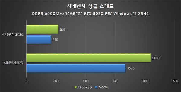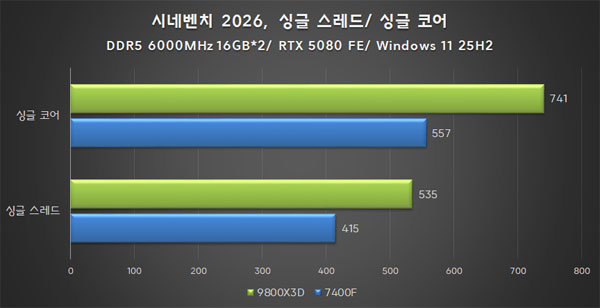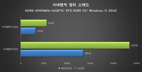½Ã³×º¥Ä¡ R23°ú 2026¹öÀü ¸ðµÎ ¶óÀÌÁ¨ 7 9800X3DÀÇ ¸ÖƼ ½º·¹µå ¼º´ÉÀÌ ¾à 70%, ½Ì±Û ½º·¹µå
