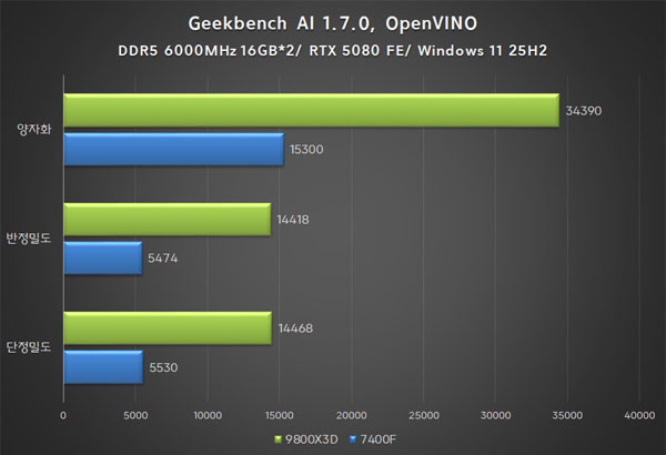 OpenVINO Å×½ºÆ®¿¡¼´Â ¶óÀÌÁ¨ 7 9800X3D°¡ ¸ðµç Å×½ºÆ® Ç׸ñ¿¡¼ ¶óÀÌÁ¨ 5 7400Fº¸´Ù µÎ ¹è