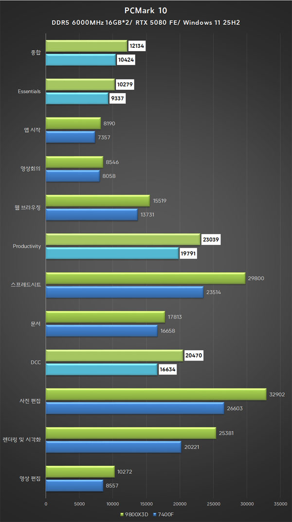 Àü¹® ÀÛ¾÷±îÁö, È®½ÇÈ÷ ¶óÀÌÁ¨ 5 7400F ´ëºñ ¶Ù¾î³ ¼º´ÉÀ» ¹ßÈÖÇÑ´Ù. ÇÏÁö¸¸ ¶óÀÌÁ¨ 7 9800X3D´Â °ÔÀÓ ¼º´ÉÀÌ Å©°Ô ¾îÇÊÇϰí ÀÖ´Â
