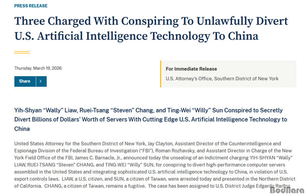 ¹Ì±¹ ¹ý¹«ºÎ°¡ 3¿ù 19ÀÏ(ÇöÁö½Ã°£) ´º¿å ³²ºÎÁö°ËÀ» ÅëÇØ °ø¼ÒÀåÀ» °ø°³Çϸé¼, ½´ÆÛ¸¶ÀÌÅ©·Î °ü·Ã AI ¼¹ö ¹Ð¼ö »ç°ÇÀÌ µå·¯³µ´Ù.