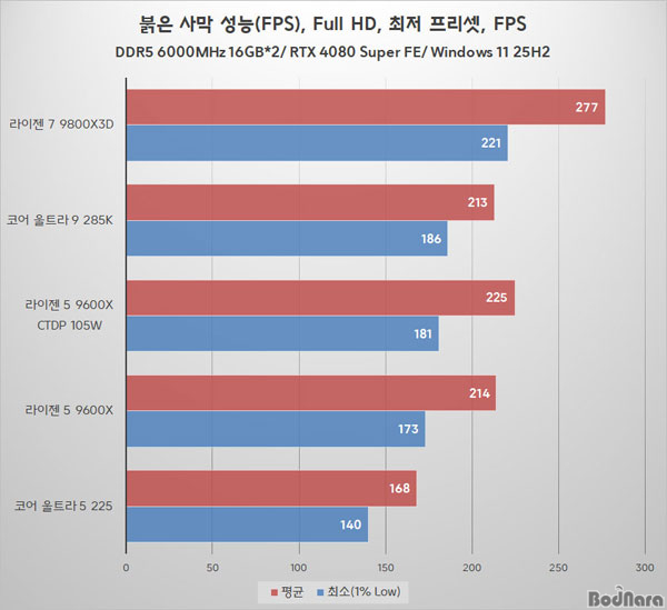 285Kº¸´Ùµµ ÁÁÀº ¼º´ÉÀ» º¸¿©ÁØ´Ù. ÇÏÁö¸¸ ÃÖ¼Ò ÇÁ·¹ÀÓ(1% Low)Àº ÄÚ¾î ¿ïÆ®¶ó 9 285K°¡ ´õ ³ªÀº °á°ú¸¦ º¼ ¼ö