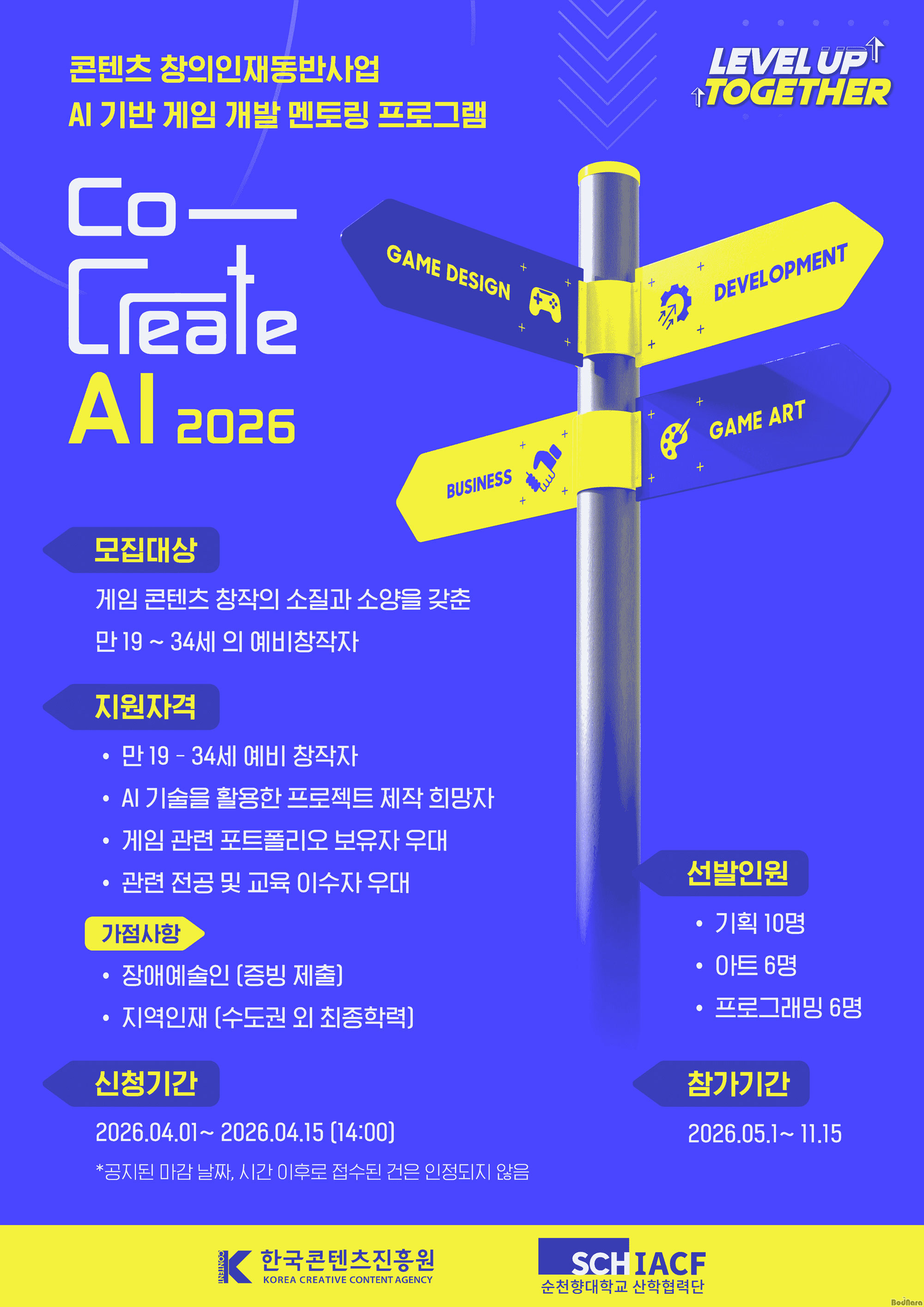 ¼øÃµÇâ´ëÇб³ »êÇÐÇù·Â´ÜÀÌ ±¹³» ÃÖ°íÀÇ °ÔÀÓ Àü¹®°¡µé°ú ÇÔ²² 2026³â ÄÜÅÙÃ÷ âÀÇÀÎÀ絿¹Ý»ç¾÷ Co-Create AI: AI±â¹Ý °ÔÀÓ°³¹ß ¸àÅ丵 ÇÁ·Î±×·¥À» ÁøÇàÇÑ´Ù.