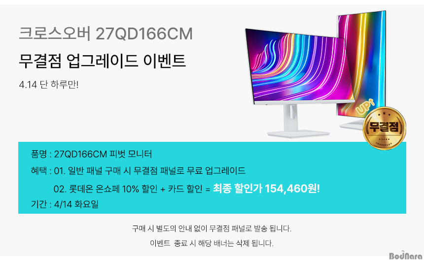 À̹ø Çà»ç´Â ·Ôµ¥¿Â ´Üµ¶À¸·Î 4¿ù 14ÀÏ(È) ÇÏ·íµ¿¾È¸¸ ÁøÇàµÇ´Â ¿øµ¥ÀÌ Æ¯°¡´Ù. À̹ø Çà»ç¿¡¼ 27QD166CM ¸ð´ÏÅÍ ÀϹݸðµ¨À» ±¸ÀÔÇÏ¸é ¹«°áÁ¡ ¸ðµ¨·Î ¾÷±×·¹ÀÌµå µÅ¼ Ãâ°íµÈ´Ù.