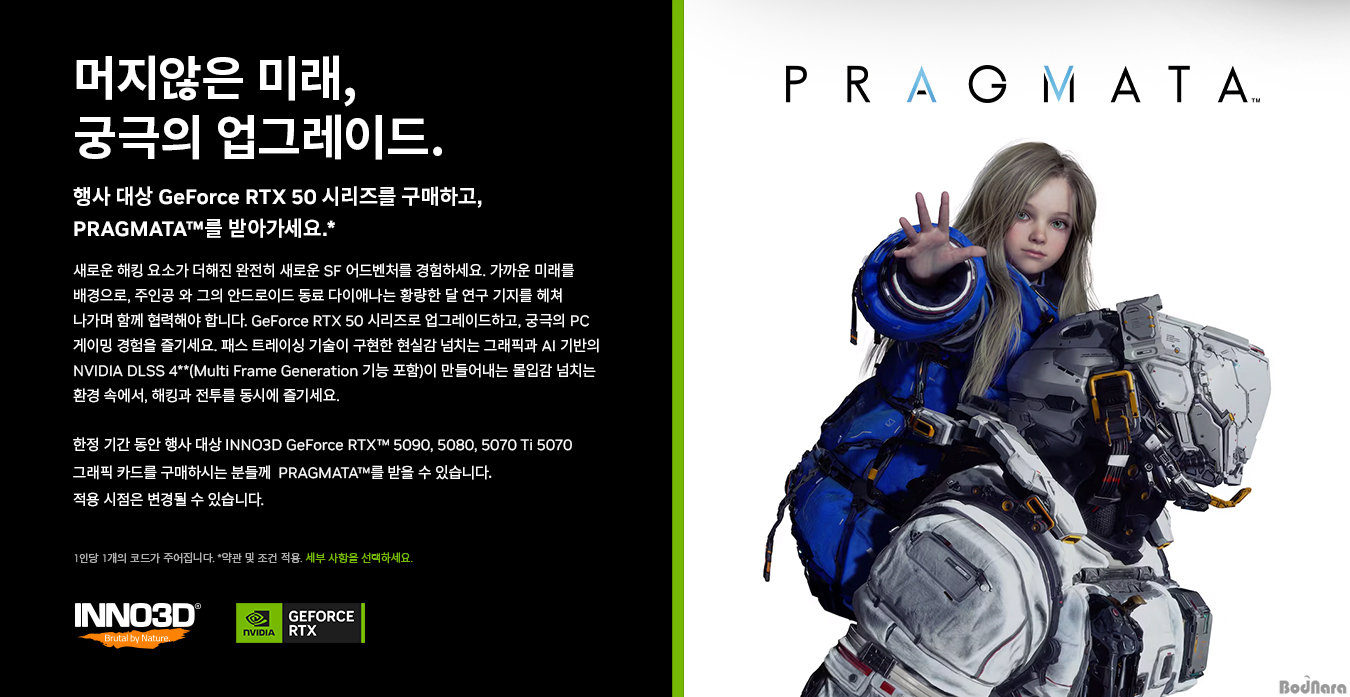 INNO3DÀÇ ±¹³» °ø½Ä À¯Åë»çÀÎ ¢ß¾ÆÀ̳ëºñ¾Æ´Â INNO3D ÁöÆ÷½º RTX™ 5070 ÀÌ»ó ½Ã¸®Áî ±×·¡ÇÈÄ«µå ±¸¸Å °í°´À» ´ë»óÀ¸·Î ½ÅÀÛ SF ¾îµåº¥Ã³ °ÔÀÓ 'PRAGMATA'¸¦ ÁõÁ¤ÇÏ´Â ÇÁ·Î¸ð¼ÇÀ» ½Ç½ÃÇÑ´Ù°í ¹àÇû´Ù.