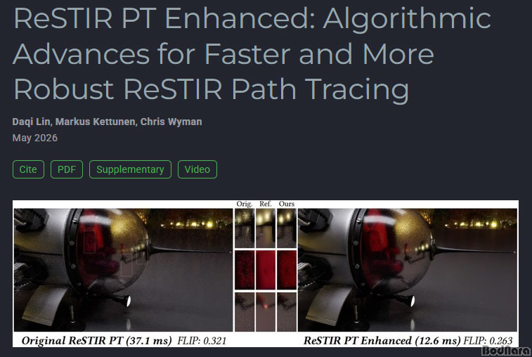 ÆÐ½º Æ®·¹À̽ÌÀº ±¤¿øÀÇ ¹Ý»ç¿Í °£Á¢±¤±îÁö ¸ðµÎ °è»êÇÏ´Â ¹æ½ÄÀ¸·Î, Çö½Ç¿¡ °¡±î¿î ±×·¡ÇÈ Ç¥ÇöÀÌ °¡´ÉÇÏÁö¸¸ ¿¬»ê·®ÀÌ ¸Å¿ì ³ô¾Æ ÇöÀç ÃÖ»ó±Þ ±×·¡ÇÈ Ä«µå¿¡¼µµ ¼º´É ºÎÁ· Çö»óÀÌ ¹ß»ýÇÒ Á¤µµÀÇ ±â¼úÀÌ´Ù. ¶§¹®¿¡ ¾÷½ºÄÉÀϸµ°ú ÇÁ·¹ÀÓ »ý¼º ±â¼ú »ç¿ë ½Ã¿¡µµ °æ¿ì¿¡ µû¶ó ¼º´É°ú ǰÁú À̽´°¡ ¹ß»ýÇÒ Á¤µµ·Î ½Ç »ç¿ëÀÌ Á¦ÇÑÀûÀε¥, À̹ø¿¡ °ø°³µÈ 'ReSTIR PT Enhanced'´Â ±âÁ¸ ReSTIR ±¸Á¶¸¦ °³¼±ÇØ µ¿ÀÏÇÑ Çϵå¿þ¾î¿¡¼ ´õ ¸¹Àº ±¤¿ø »ùÇÃÀ» È¿À²ÀûÀ¸·Î ó¸®ÇÒ ¼ö ÀÖ´Â °ÍÀÌ ÇÙ½ÉÀÌ´Ù.