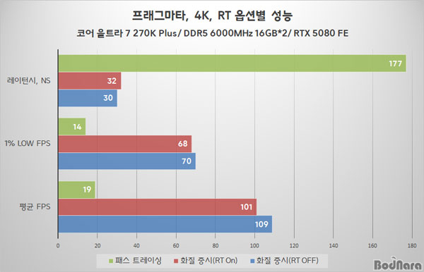 ÁöÆ÷½º RTX 5080 FE ±¸¼º¿¡¼ÀÇ °á°ú·Î, ·¹ÀÌ Æ®·¹ÀÌ½Ì On-Off »óżÀÇ Â÷ÀÌ´Â Å©Áö ¾ÊÀº °ÍÀ¸·Î ³ªÅ¸³ª, ·¹ÀÌ