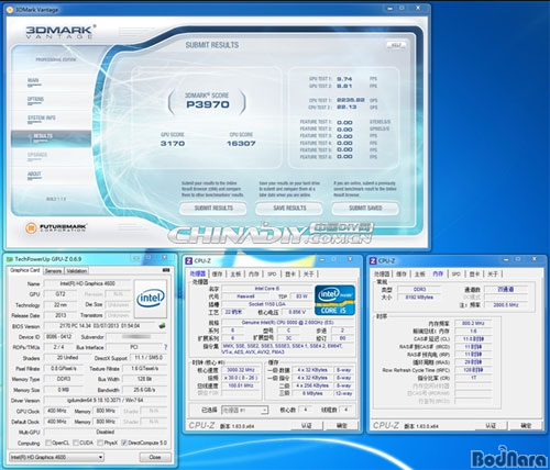 3DMark Vantage·Î Å×½ºÆ®µÈ ÇϽºÀ£ »ùÇÃÀº DDR3-1600 (800)MHz ½Ã½ºÅÛ ¸Þ¸ð¸® Á¶Çսà ¿£Æ®¸® ÇÁ¸®¼Â (E)¿¡¼ E14129, ÆÛÆ÷¸Õ½º ÇÁ¸®¼Â (P)¿¡¼ P3970À» ±â·ÏÇßÀ¸¸ç ÆÛÆ÷¸Õ½º ÇÁ¸®¼ÂÀÇ GPU ½ºÄÚ¾î´Â 3170, CPU ½ºÄÚ¾î´Â 16307·Î È®ÀεȴÙ. ÀÌ ½ºÄÚ¾î´Â ÁöÆ÷½º GT 240¿¡ °¡±î¿ì¸ç ÇöÀçÀÇ ¾ÆÀ̺ñºê¸´Áö ³»Àå HD Graphics 4000 ´ëºñ ´ë·« 20%, HD Graphics 3000ÀÇ 2¹è ÀÌ»óÀÇ ½ºÄÚ¾î¶ó°í ÀüÇß´Ù.